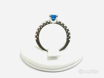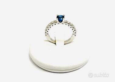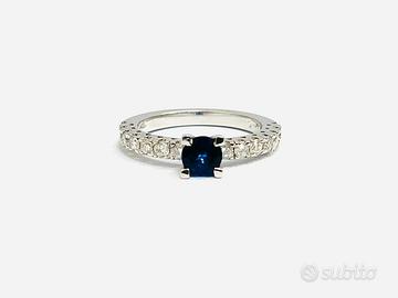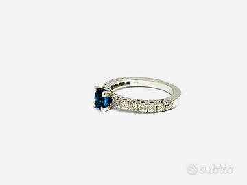 Anello con Zaffiro 0.60 Ct e Diamanti 0.70 ct in oro bianco 18 kt