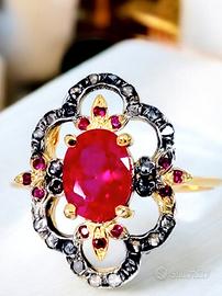 Anello in stile antico art decó periodo 1930-1940 in oro giallo 9kt e argento.
