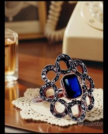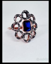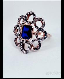 Anello Art Déco antico, oro giallo 9 kt e argento 925, zaffiro ottagono da 1,91 ct e 36 diamanti taglio antico totali 0,42 ct, peso totale 4,40 g, misura 59 EU, nuovo.