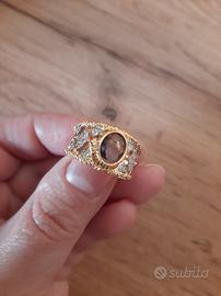 Anello lavorato artigianalmente stile buccellati placcato in due tonalità argento-oro pietra viola SOLO SPEDIZIONE NO SCAMBIO A MANO
