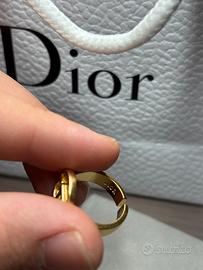 Elegante anello stile Dior in metallo dorato con iconico logo CD centrale.