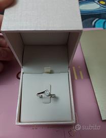 Anello Solitario Petali Oro Bianco 750/1000 Diamante Bianco 0,13 ct nuovo completo di garanzia e certificato. Mai indossato. Misura 16,