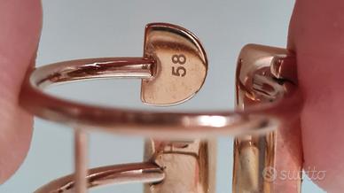 Anello in ottime condizioni, misura 58. Realizzato in lega di metalli antiallergico, placcato oro rosa, con cristalli Swarovski. On line in vendita a 119 euro. Non ho più la scatola.