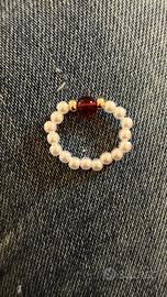 Due anelli elasticizzati. Una con perline panna e la centrale marrone e l altro con perline panna e centrale rosso. Il prezzo si intende per cadauno.