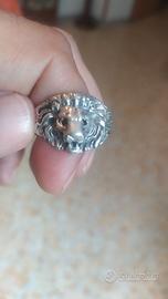 bellissimo anello con testa di leone è due piccole pietre anello e vintage anni 80 ottima manifattura in argento 925 la taglia è per una mano grande ( uomo) penso 22/23.