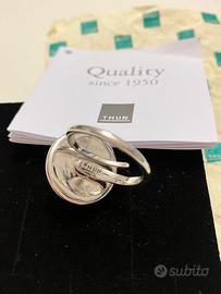 anello Thun con panda, in ceramica, ottone rodiato e smalto - regolabile.