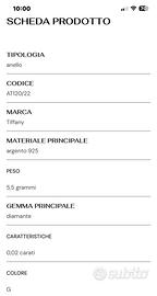 Anello in argento 925 Tiffany modello Locks misura 13 con brillantini 0,02 carati. Vendo in quanto allergica all’argento.