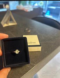 Anello in oro bianco 18 ct, con pietra acqua marina e diamanti. Taglia 10