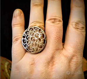 Vendo anello di metallo traforato, grande e d'effetto. Diametro circa 18 mm.