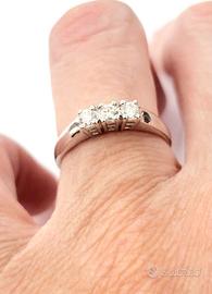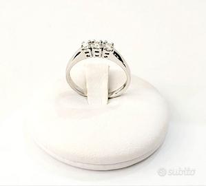 Anello Trilogy modello 4 griffe in Oro Bianco con Diamanti 0,15 ct - 18 kt ( 750 ) - 2,20 gr circa