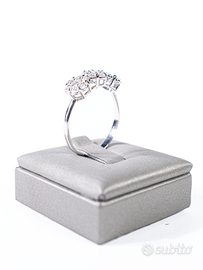 Anello trilogy fiori in oro bianco 750 18kt con diamanti di massa complessiva stimata 0.90ct, colore e purezza stimate GH-VS.