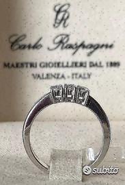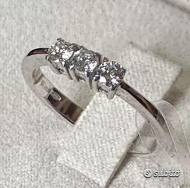 ANELLO TRILOGY IN ORO BIANCO 750°/°° - 18 carati CON DIAMANTI* NATURALI TAGLIO BRILLANTE PESO ORO ANELLO gr. : 3,20 3 DIAMANTI ct. : 0,30 - Colore : G / Purezza:VS MISURA DEL DITO: 14 (DISPONIBILI ANELLI TRILOGY DI VARIE CARATURE A RICHIESTA) (è possibile cambiare misura dell'anello per qualsiasi informazione contattateci) altre foto a richiesta via email spedizione con assicurata tramite Poste Italiane *I NOSTRI DIAMANTI SONO ESCLUSIVAMENTE NATURALI E NON DIAMANTI CE (CLARITY ENHANCED) ; I DIAMANTI "CE" (CLARITY ENHANCED) SONO COMUNQUE DIAMANTI, MA CON PUREZZA MODIFICATA, QUINDI DI QUALITA' INFERIORE. GRAZIE AD UNA TECNOLOGIA D'AVANGUARDIA SI RIESCE AD ELIMINARNE LE IMPERFEZIONI E AD AUMENTARNE LUMINOSITA' E LUCENTEZZA. QUESTI DIAMANTI CE PERTANTO, NON ESSENDO NATURALI, MA TRATTATI, HANNO UN PREZZO DI MERCATO NETTAMENTE INFERIORE RISPETTO A QUELLI NATURALI. FATE PERCIO' ATTENZIONE AL PREZZO PIU' BASSO! POTREBBE ESSERE FUORVIANTE!!! NON SEMPRE E' SINONIMO DI AUTENTICITA', QUALITA' E SOPRATTUTTO UN AFFARE.