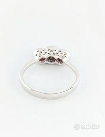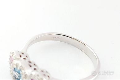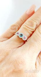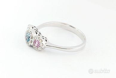 Anello da Donna Trilogy modello magic con Zaffiro Rosa ct 0,23 e Acquamarina ct 0,12 centrali e contorno di Diamanti naturali Taglio Brillante ct 0,28 lavorato in Oro Bianco 18kt-750 - Grammi 3,55