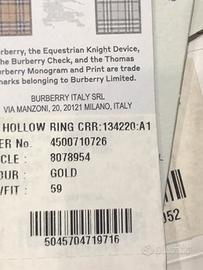 Stupendo elegante misura L 59 19/20 in metallo bagno oro. Marca Burberry con scatola e targa