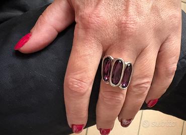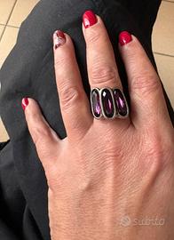Metallo bagnato nell’argento, e tre cristalli di colore viola.