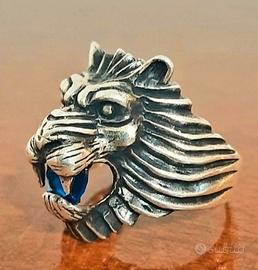 fantastico anello in argento 925 raffigurante leone .stringe tra i denti un meraviglioso zaffiro blu da 2.5 kt ovale sfaccettato per visionare altri miei gioielli basta richiedere amicizia su faacebok a giulio freddy