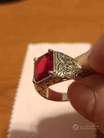 Metto in vendita anello Uomo con pietra rossa intarsiato, misure: diametro 22.30