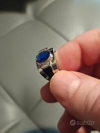 Metto in vendita anello Uomo in acciaio con pietra blu in cristallo nuovo misura regolabile.