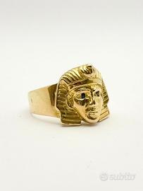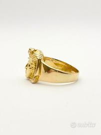 Anello da uomo in oro giallo 18KT ( 750 ‰ ) di grammi 14.60 impreziosito da zaffiri naturali forma tonda e taglio sfaccettato.