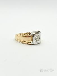 Anello in oro bianco e rosa 18KT ( 750 ‰ ) di grammi 9.93 impreziosito da diamante naturale forma tonda e taglio a brillante di ct 0.40. Epoca 1940.