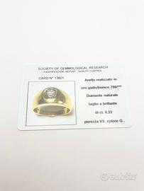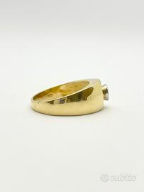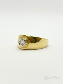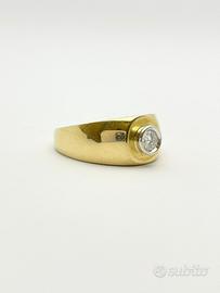 Anello da uomo in oro giallo e bianco 18 KT ( 750 ‰ ) di grammi 7.96 modello solitario, impreziosito da diamante naturale forma tonda e taglio a brillante di ct 0.33; purezza VS colore G.
