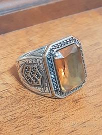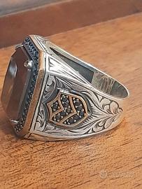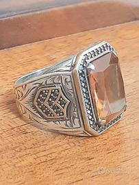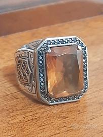 Anello uomo argento 925 topazio ring bague anillo man zilber argent