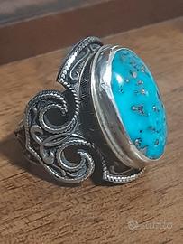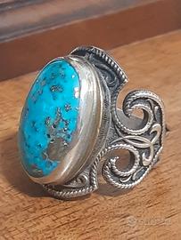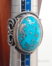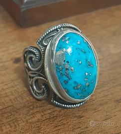 turchese naturale arizona miniera morency rarissimo con inclusioni argento su anello inciso