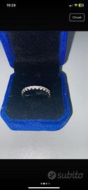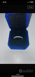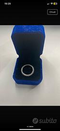 Splendido anello modello Eternity (veretta a giro completo), dal design estremamente sottile, raffinato e luminoso. Questo gioiello è caratterizzato da una fila continua di zirconi cubici di alta qualità, incastonati con cura per garantire una brillantezza eccezionale ad ogni movimento della mano. Perfetto per chi ama lo stile minimal ed elegante, ideale da indossare da solo o in "stacking" abbinato ad altri anelli. • Pietre: Zirconi taglio brillante (giro completo) • Design: Ultra-thin / Sottile e delicato • Colore: Argento / Silver • Misura: 15.3 mm • Condizioni: Pari al nuovo, mai usato.