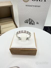 Elegante anello veretta in argento 925 placcato oro bianco, impreziosito da diamanti moissanite da 0,1 carati (3,0 mm), con taglio brillante e purezza VVS1, per uno splendore senza pari.