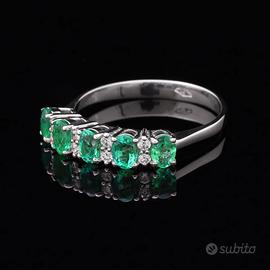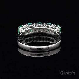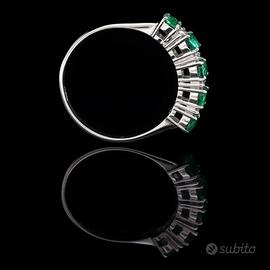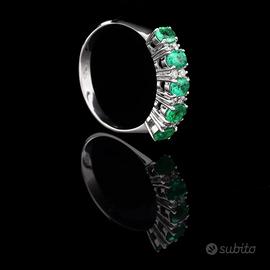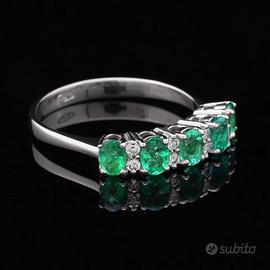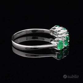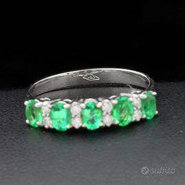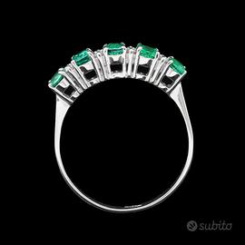 ANELLO VERETTA IN ORO BIANCO 18 KT 750 N.8 DIAMANTI TAGLIO ROTONDO A BRILLANTE 0.12 CT TOTALE N.5 SMERALDI TAGLIO OVALE 0.80 CT H COLOR VS2 MISURA INTERNA DITO ITALIANA 14.50 DIAMETRO INTERNO 17.36 MM PESO GR. 2.70 DIAMANTI E SMERALDI SONO NATURALI, NON TRATTATI ED AUTENTICI (NON TRATTIAMO ZIRCONI) CON CERTIFICATO DI GARANZIA MOSSA!!! OGGETTO ACQUISTATO DAI PRIVATI NEI NOSTRI NEGOZI E RIMESSO A NUOVO DAL NOSTRO ORAFO COME DA VETRINA ! OTTIMO PER FARE O PER FARSI UN BEL REGALO ! VIENE CONSEGNATO CON UNA ELEGANTISSIMA SCATOLA E' POSSIBILE MODIFICARE LA MISURA DELL'ANELLO CON PICCOLO SUPPLEMENTO RILASCIAMO FATTURA DI VENDITA NELLA QUALE CERTIFICHIAMO L'OGGETTO SPEDIAMO GRATIS IN TUTTO IL MONDO