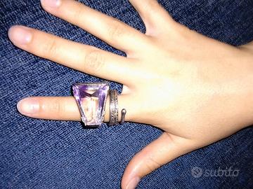 Anello realizzato a mano in pezzo unico dal maestro orafo Borghesi Marco in argento e oro bianco con tormalina e inserzioni di ametista.