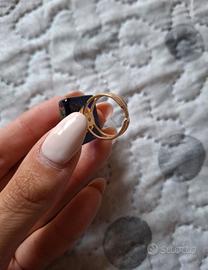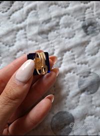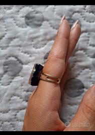 Anello con vetro di Murano di colore blu e oro. Inserimento regolabile