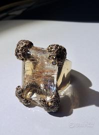 Anello Daniel Swarovski con quarzo rutilato giallo-dorato