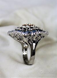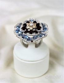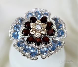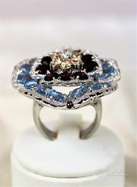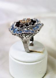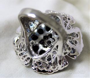 Spettacolare grande anello "vintage " in argento massiccio 925, composto da grande insieme di pietre a formare un delizioso fiore sbocciato.
