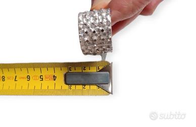 Anello vintage anni ’70 con fascia larga impreziosita da numerosi cristalli sfaccettati effetto diamante, molto luminosi.