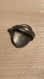 Bellissimo anello vintage in metallo ,con grande pietra ovale liscia di colore scuro. Design elegante e senza tempo, adatto sia uomo che donna. Buone condizioni generali, normali segni del tempo.