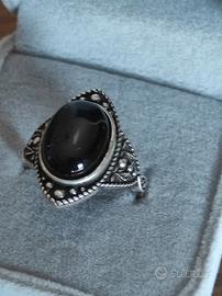 Anello Vintage in Argento S925 con Onice Nera