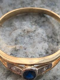 Anello Vintage in Oro 18 kt 750 con Diamanti e Zaffiro naturale