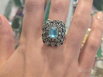 bellissimo anello vintage in argento e oro 18 con pietre naturali misura 19 regolabileConsegna garantita 24/48 ore