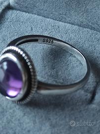 Elegante anello in argento sterling 925 (punzonato S925) con splendida pietra viola dal colore intenso e luminoso.