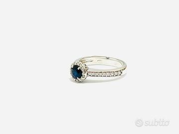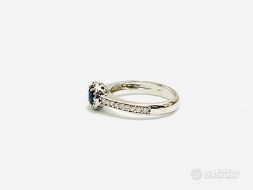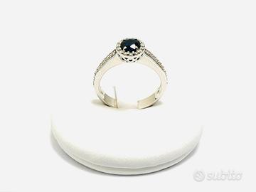 Anello con Zaffiro 0.50 Ct e Diamanti 0.35 ct in oro bianco 18 kt