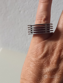 Anello Zoppini in acciaio, bel motivo geometrico, misura 16, diametro 18 mm. Mai indossato ma senza scatola originale.