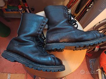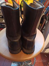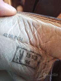 Anfibi da paracadutista originali, colore marroni testa di moro. Rinforzati sul tallone per i lanci, con materiali e finiture di oregio come facevano una volta. Marca De Risi, misura 42 ma ok anche per un 43, fine Anni '90, ben tenuti, usati pochissimo, ottimo anche l'interno e la suola con viti.. Da collezione e non.