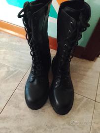Vendo paio di anfibi da donna alti fino a metà polpaccio, con un po' di zeppa, con cerniera e lacci. Neri, in ecopelle. Numero 39. Vendo causa inutilizzo. Prezzo 30 euro. Ritiro a mano. No perditempo e non faccio spedizioni.