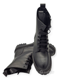 Stivali Anfibi Combat Boot Neri - Stile e Comfort Garantiti! Aggiungi un tocco grintoso e di tendenza al tuo guardaroba con questi fantastici anfibi neri. Perfetti per ogni stagione e ideali per un look casual, rock o più ricercato. Caratteristiche Principali: Colore: Nero Classico Materiale: Similpelle Vera Pelle di alta qualità, resistente e facile da pulire. Design: Modello Combat Boot a metà polpaccio con chiusura a lacci. Praticità: Dotati di cerniera laterale per una calzata rapida e comoda, senza dover slacciare ogni volta. Suola: Platform alta con design a carrarmato (track sole), per un grip eccellente e un look audace. Comfort: Suola spessa che garantisce isolamento e comodità per lunghe camminate. Perfetti da abbinare a: Jeans skinny, gonne in pelle, abiti floreali per un contrasto di stile, leggings e molto altro!