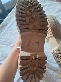 Anfibi estivi leggeri color crema stupendi! Acquistati perché molto trendy ma nn li metto.. Hanno bella suola a carro armato che alza molto. La statura. Stringhe e cerniera laterale. Tessuto morbido sembra nappa
