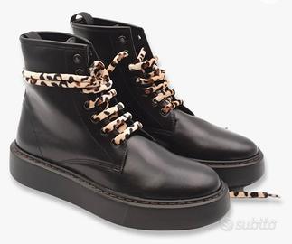 Vendo anfibi da donna come da foto. Colore: nero Lacci: doppia coppia - neri e maculati (vedi foto) Marca: Frau Materiale: pelle Taglia: misura 37