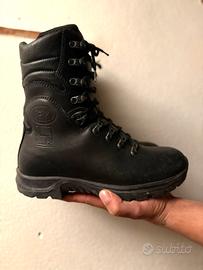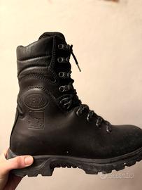 Scarponi in cuoio nero impermeabili Goretex con punta in metallo Usati poche volte per la caccia e la pesca