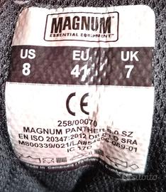 Vendo paio di anfibi Magnum Panther 8.0 SZ. Taglia 41. Chiusura frontale con lacci e chiusura laterale con zip.