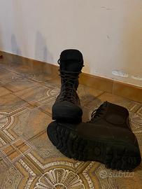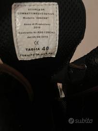 Anfibi militari tipo estivo per tutti i terreni. Nessun difetto, usati poco. In pelle marrone e tessuto resistente. Suola come nuova.